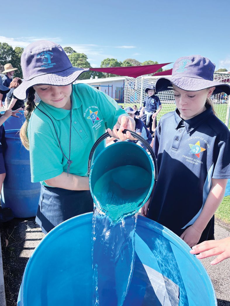 STUDENTS at Our Lady of Fatima School marked the final day of Term 1 with a powerful act of solidarity, taking part in the school’s Big Walk to Water on Thursday 2 April. The event invited students to walk a lap of the school’s running track while carrying a bucket of water, an activity designed to highlight the daily reality faced by millions of children around the world.