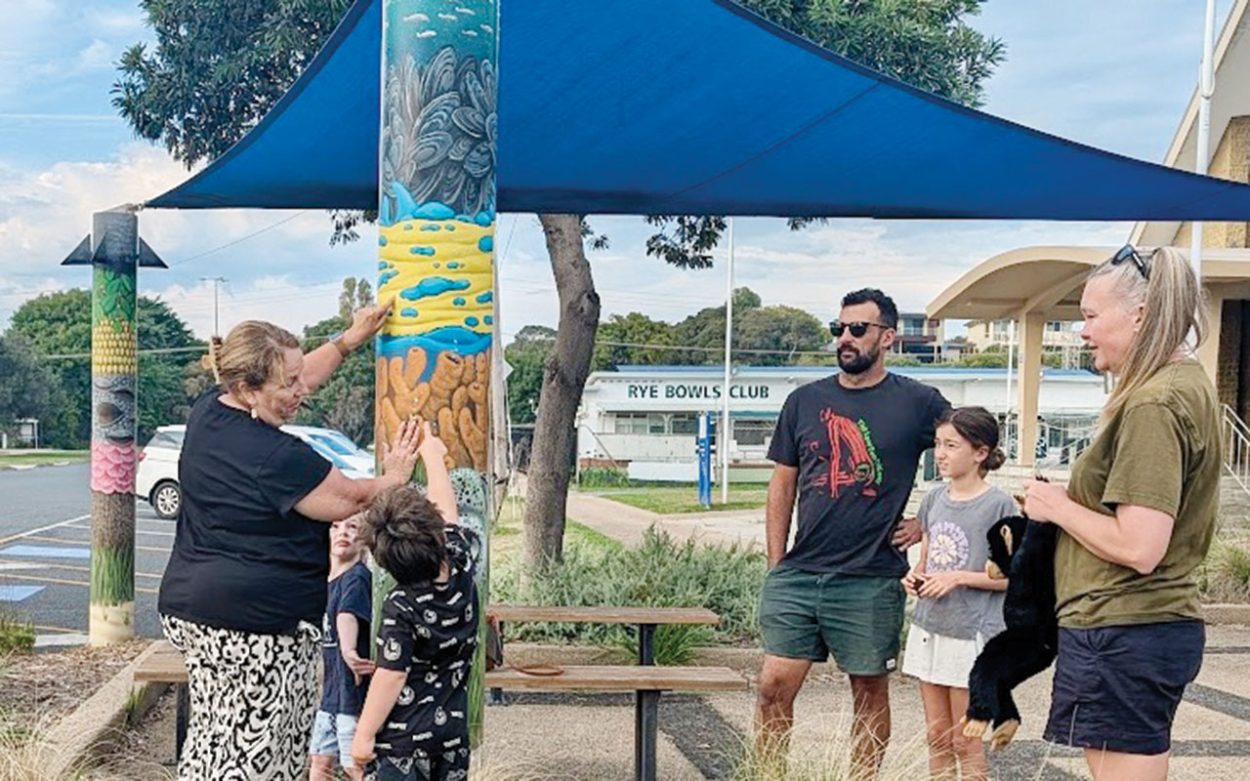 The once tacky shade sail bollards are now bursting with colour with Tyson drawing inspiration from the bay, the back beaches, and Rye’s native flora and fauna.